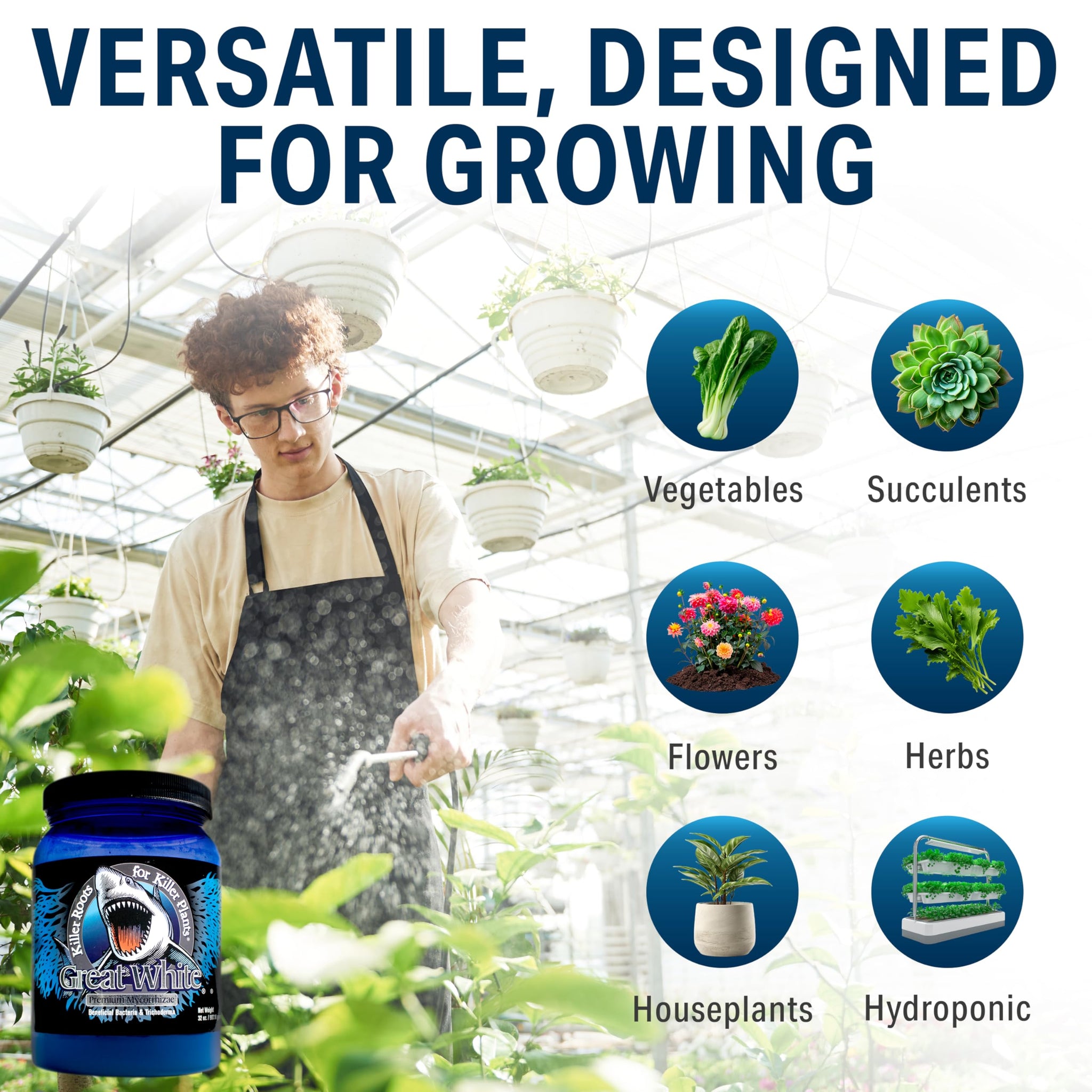 - Suitable for All Growing Systems: Whether you're growing in soil, hydroponics, or other soilless mediums, Great White is compatible with all growing systems.